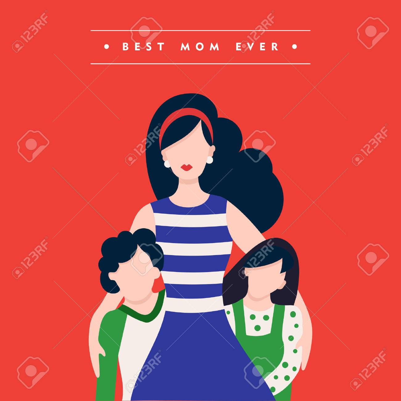 Happy Mothers Day Family Illustration Mom With Kids And Holiday