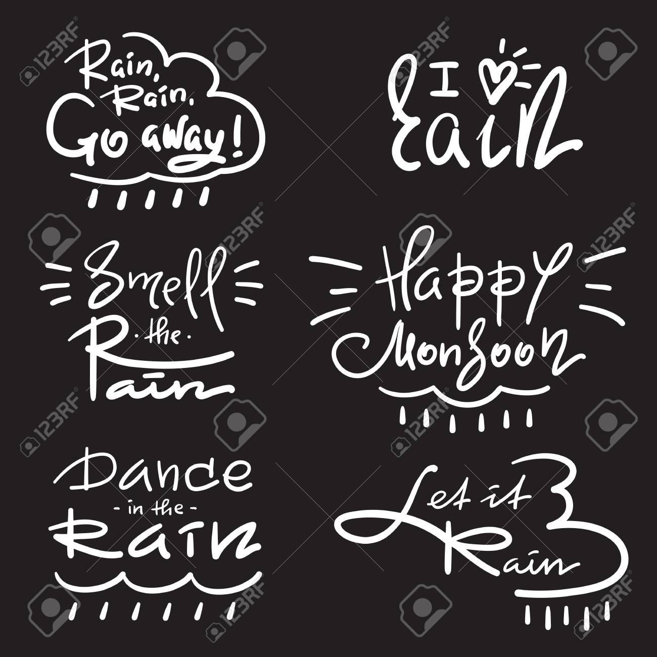 Set Of Simple Inspire And Motivational Quotes About Rain Hand
